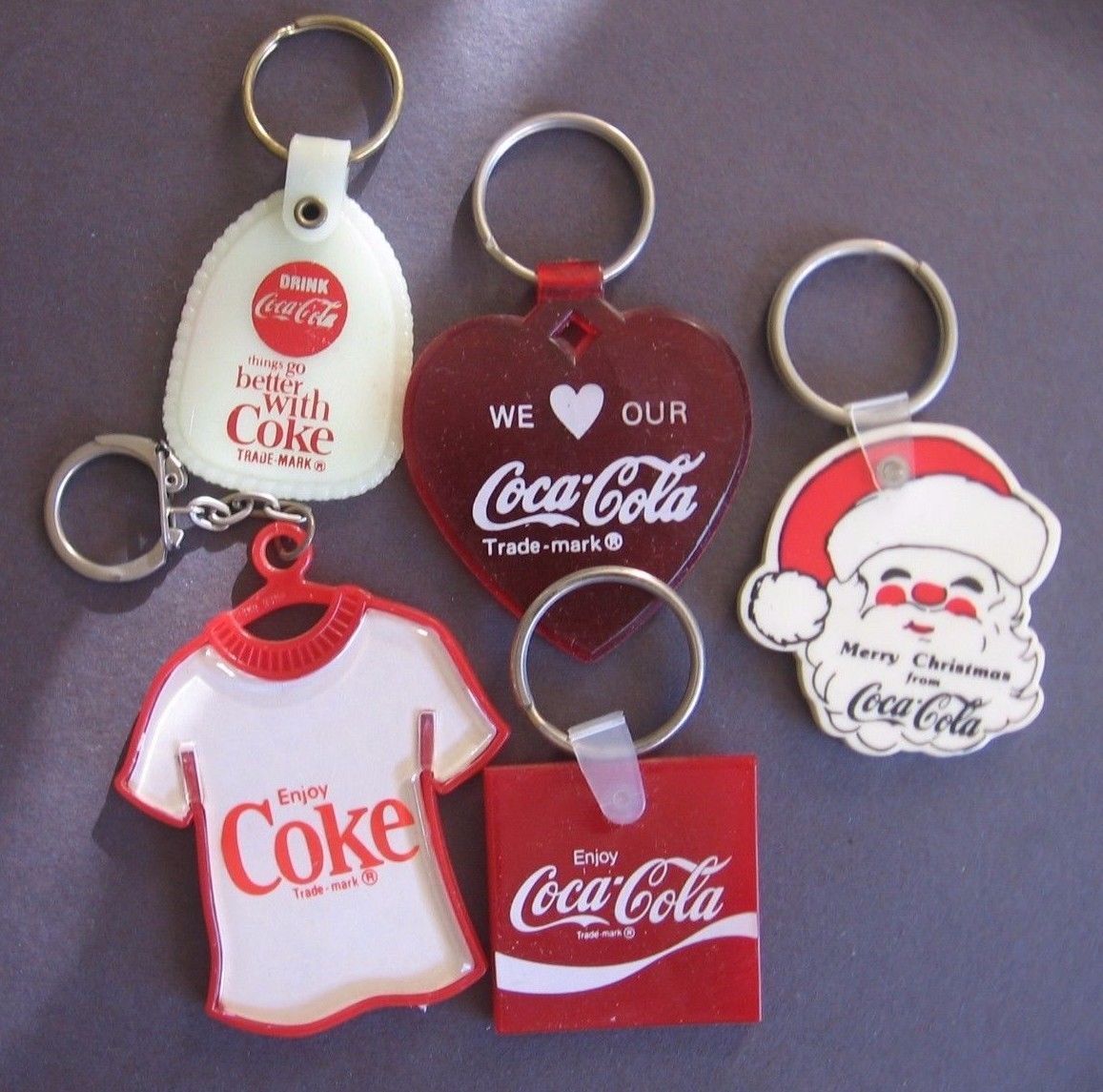 Title (ebay affiliate link): Coca Cola Five Key Rings Santa Tee Shirt Heart & Others