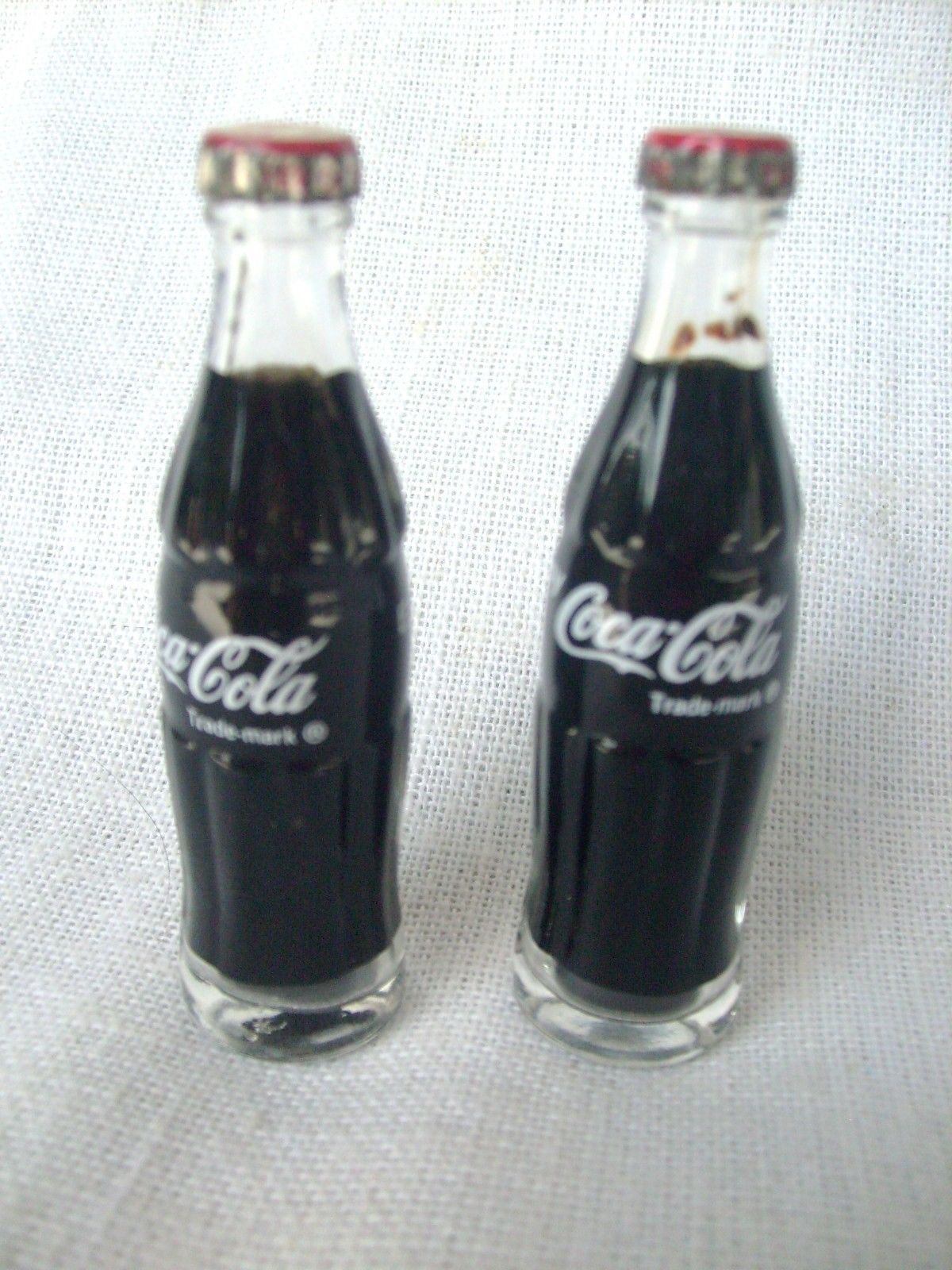 Title (ebay affiliate link): 2 Mini Coca Cola Bottles Coke ~ 3" Glass w/ Caps