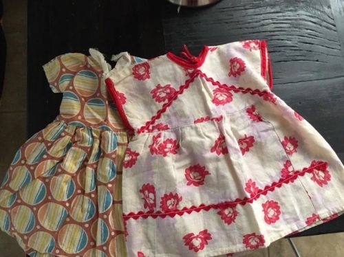 Vtg 2 Antique 50''s Baby Doll or Bear Cotton Feedsack Dresses