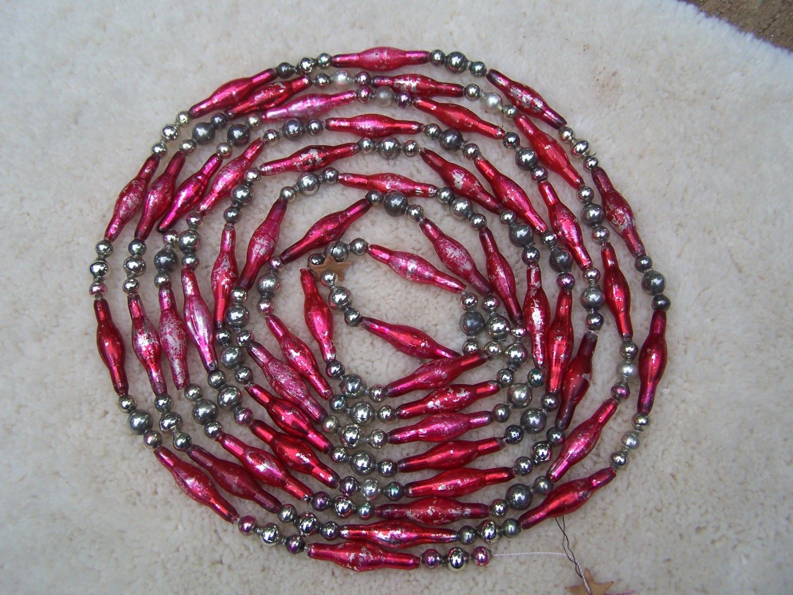 Title (ebay affiliate link): 12'' Antique Vtg Xmas Red & Silver Mercury Glass Bead Feather Tree Garland Shapes