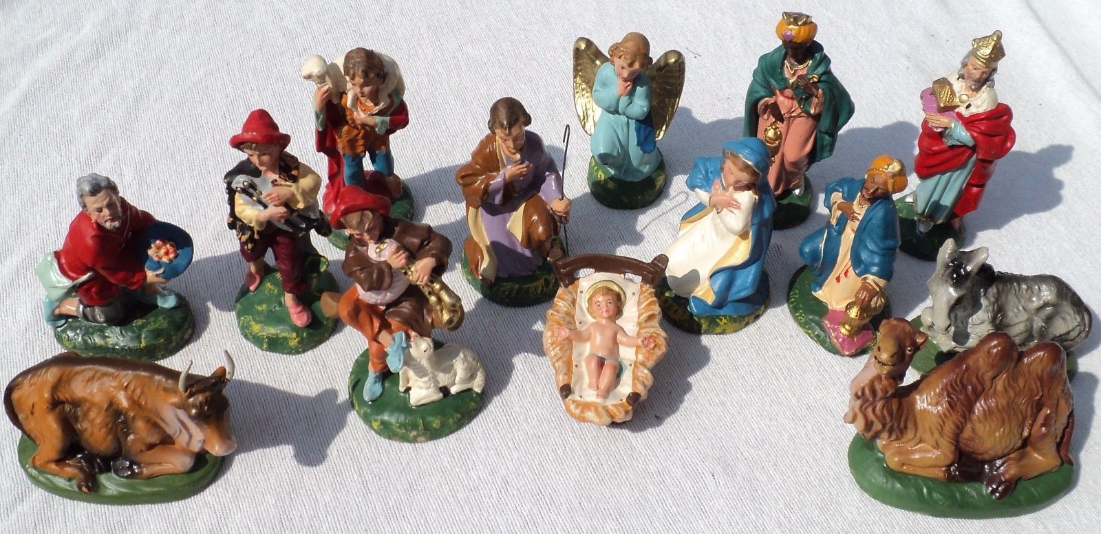 Title (ebay affiliate link): 14 Vtg Early Fontanini Hand Painted Paper Mache Nativity Figures Italy Xmas
