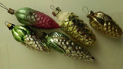 Antique CHRISTMAS silver glass ornaments 5 CONES