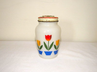 VINTAGE Fire King Dutch Tulip Salt Shaker w/ Lid Milk Glass 4.5"