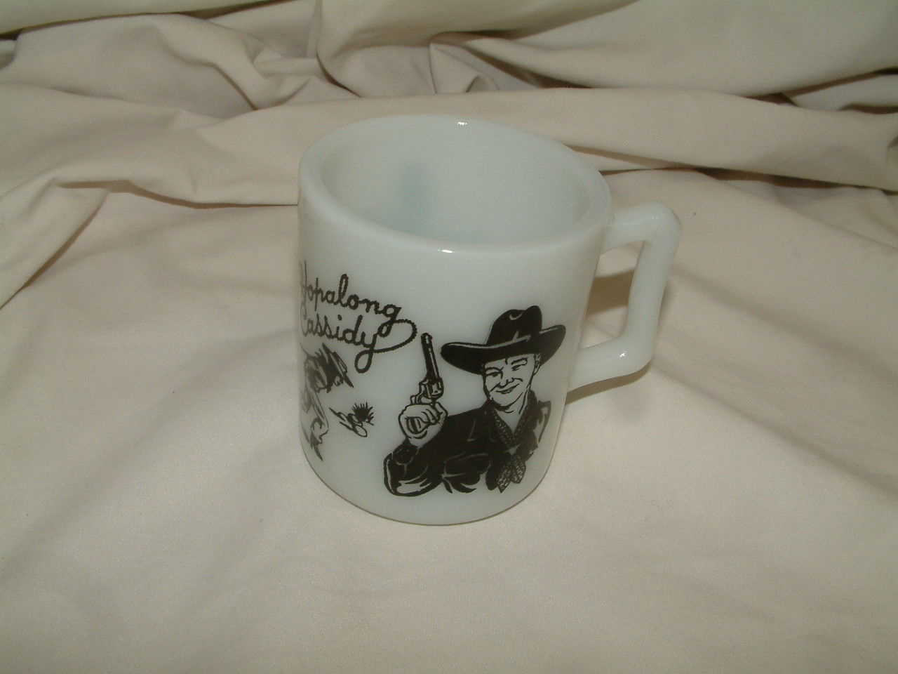 Title (ebay affiliate link): Vintage Hazel Atlas HOPALONG CASSIDY Milk Glass Mug BLACK NICE!
