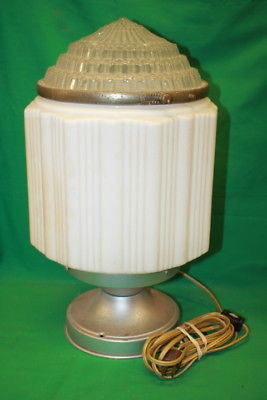 Title (ebay affiliate link): Large Vintage Milk Glass Clear Art Deco Skyscraper Shade Ceiling Light Globe
