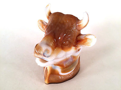 Title (ebay affiliate link): LG Wright Caramel Marble Slag Milk Glass Bulls Head Mustard Covered Dish