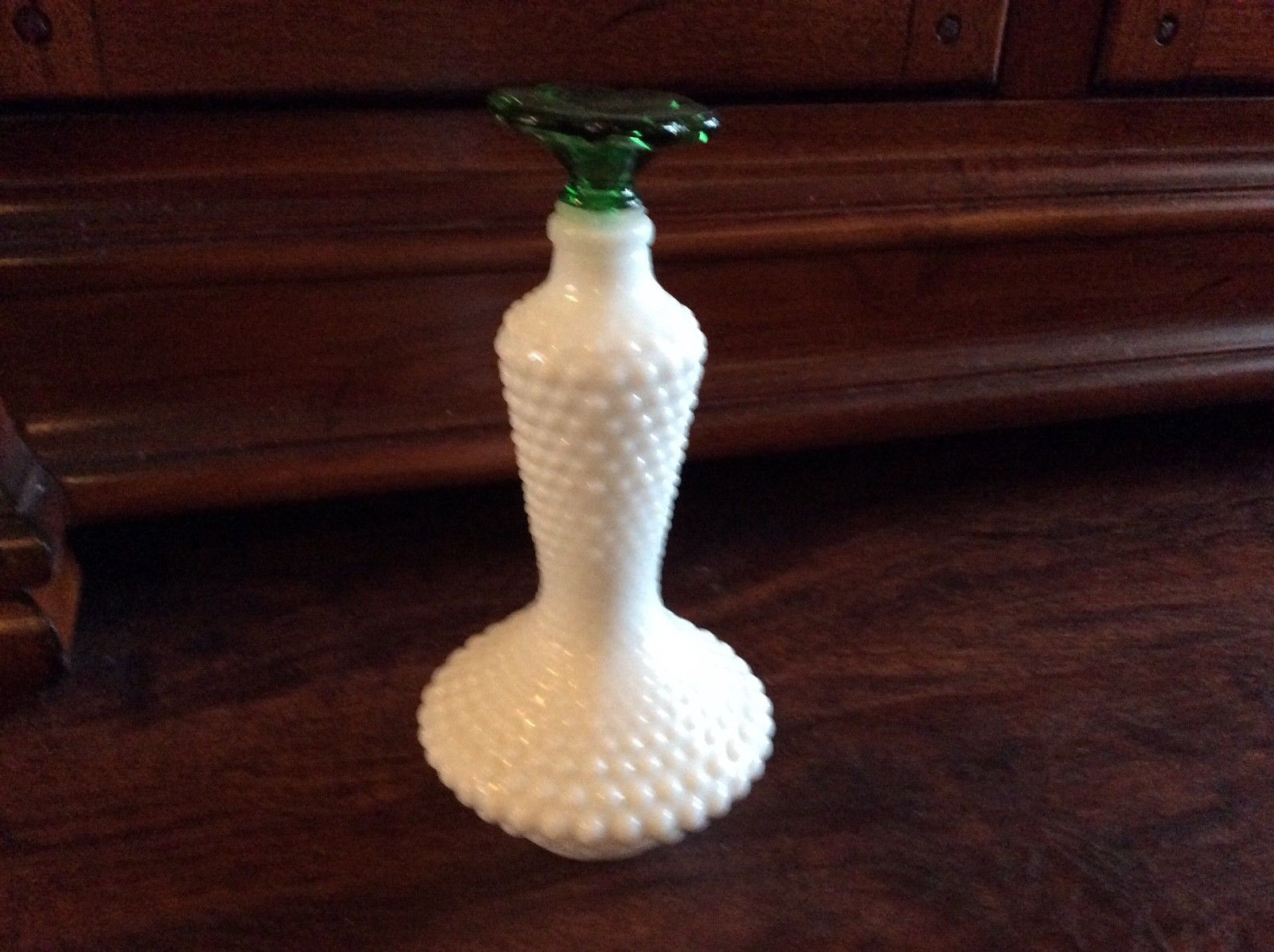 Title (ebay affiliate link): Rare Fenton MILK GLASS HOBNAIL Vanity Bottle Perfume Powder Vanity