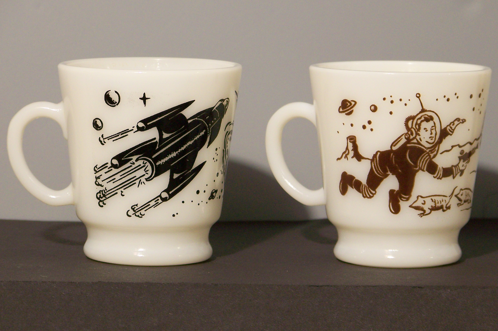 Title (ebay affiliate link): Vintage Milk Glass Outer Space Mugs SPACE SCENES Spacemen Spaceships 3"