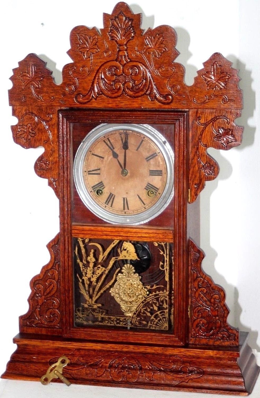 Title (ebay affiliate link): ANTIQUE RUNNING SESSIONS ASSORTMENT NO. 2 OAK EASTLAKE KITCHEN GINGERBREAD CLOCK