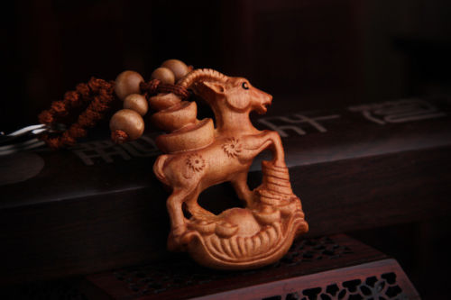 Title (ebay affiliate link): Wood 3D Carving Chinese Goat Wealth Statue Sculpture Pendant Key Chain