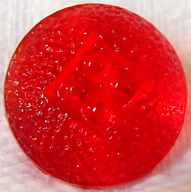 VINTAGE 1930''S RUBY RED DEPRESSION GLASS BUTTON w/DOT & BLOCK PATTERN TOP