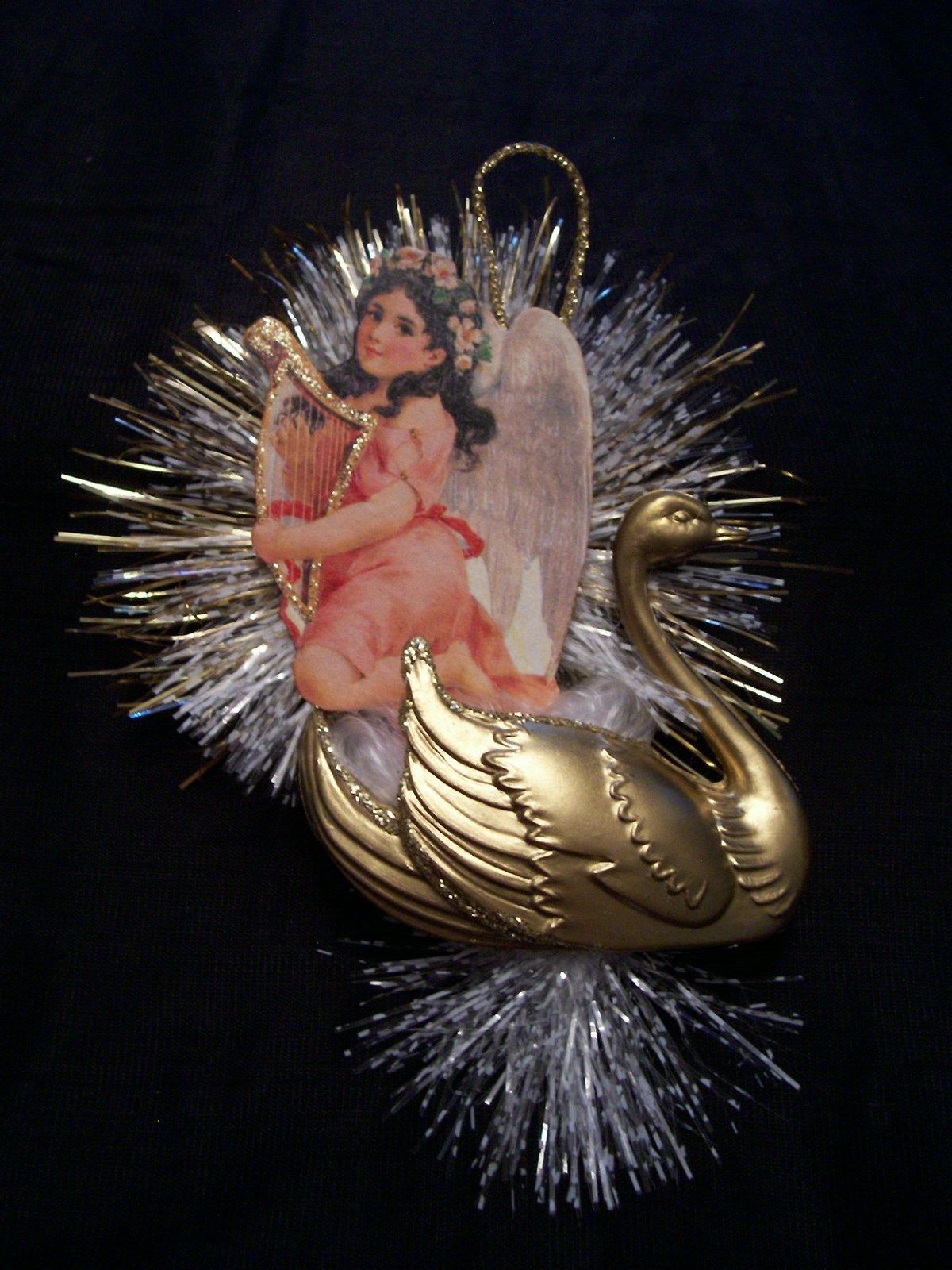 Antique Vtg. Look Christmas Ornament, Angel, VintageSWAN, Scrap,Tinsel, Handmade