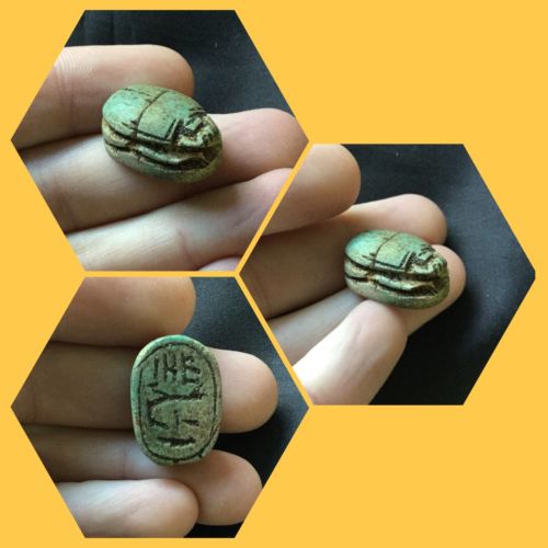 Title (ebay affiliate link): ANCIENT EGYPTIAN FAIENCE SCARAB BEETLE WITH HIEROGLYPHS, MIDDLE KINGDOM.