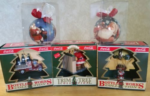 Title (ebay affiliate link): Vintage Lot of 5 Coca~Cola Ornaments: Santa Bulbs, Trim A Tree, Bottle Works NIB