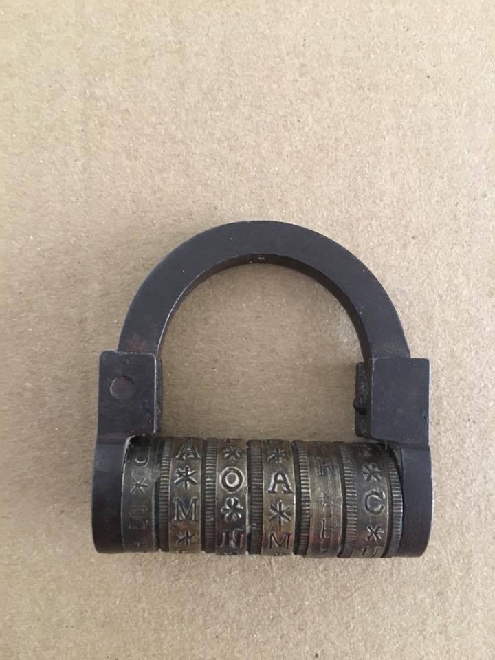 Title (ebay affiliate link): ANTIQUE&RARE OLD BRASS IRON VICTORIA PASSWORD COMBINATION PADLOCK 6 X WHELLS
