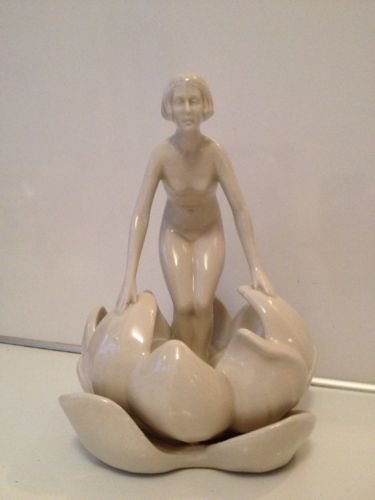 Vintage Flower Bowl Of Art Deco Nude Woman Emerging From Lotus