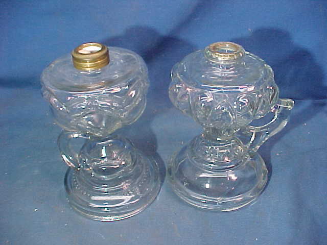 Title (ebay affiliate link): 2-19thc VICTORIAN Era FINGER Style OIL LAMPS w PEANUT + KINGS CROWN Patterns