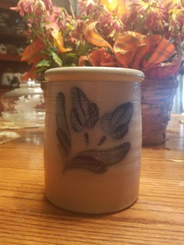 Title (ebay affiliate link): Vintage 1986 Salt Glazed Stoneware Pottery Blue Wisconsin Utensil Shelf Crock