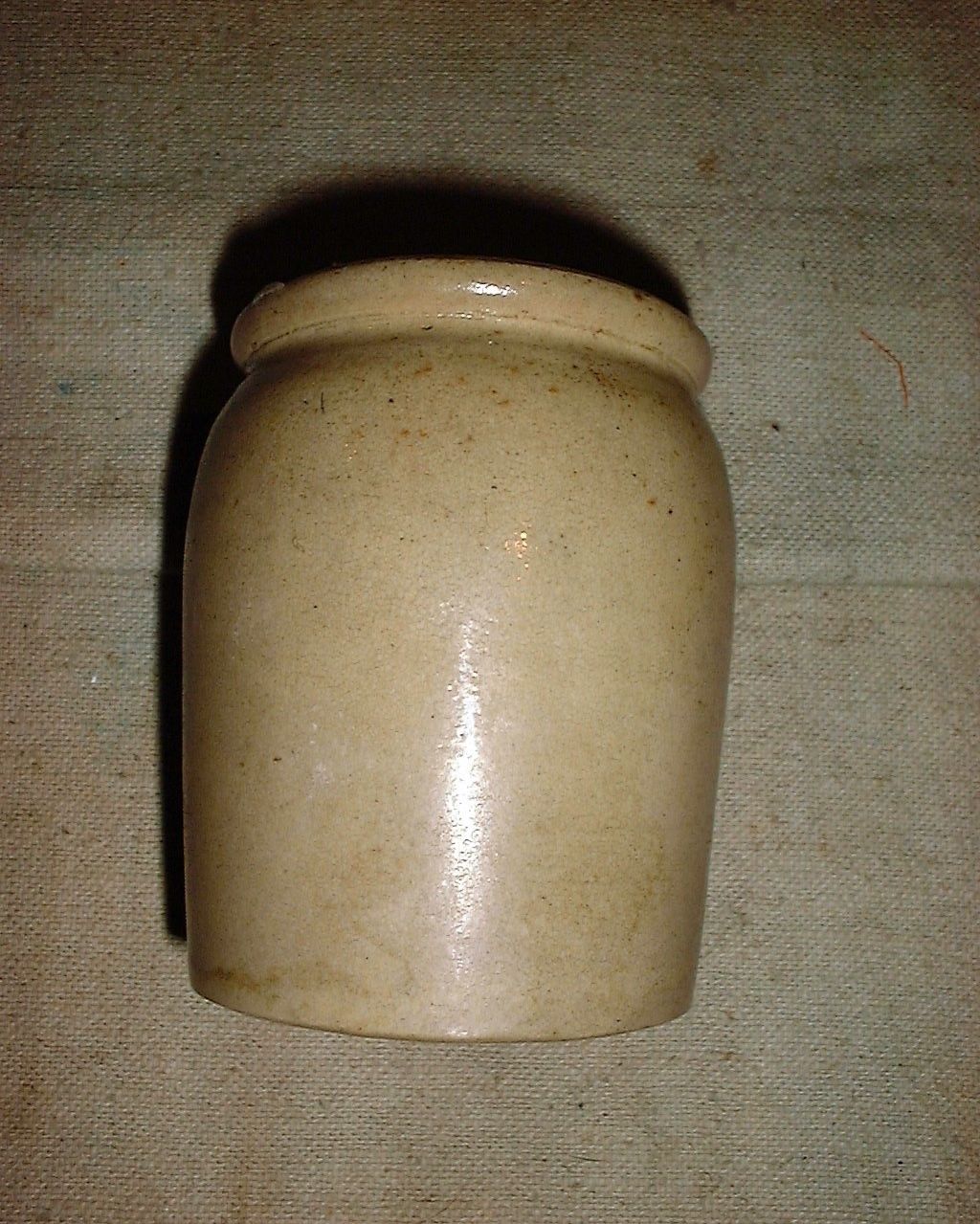 Antique stoneware miniature saltglaze crock jar snuff/ 4" tall