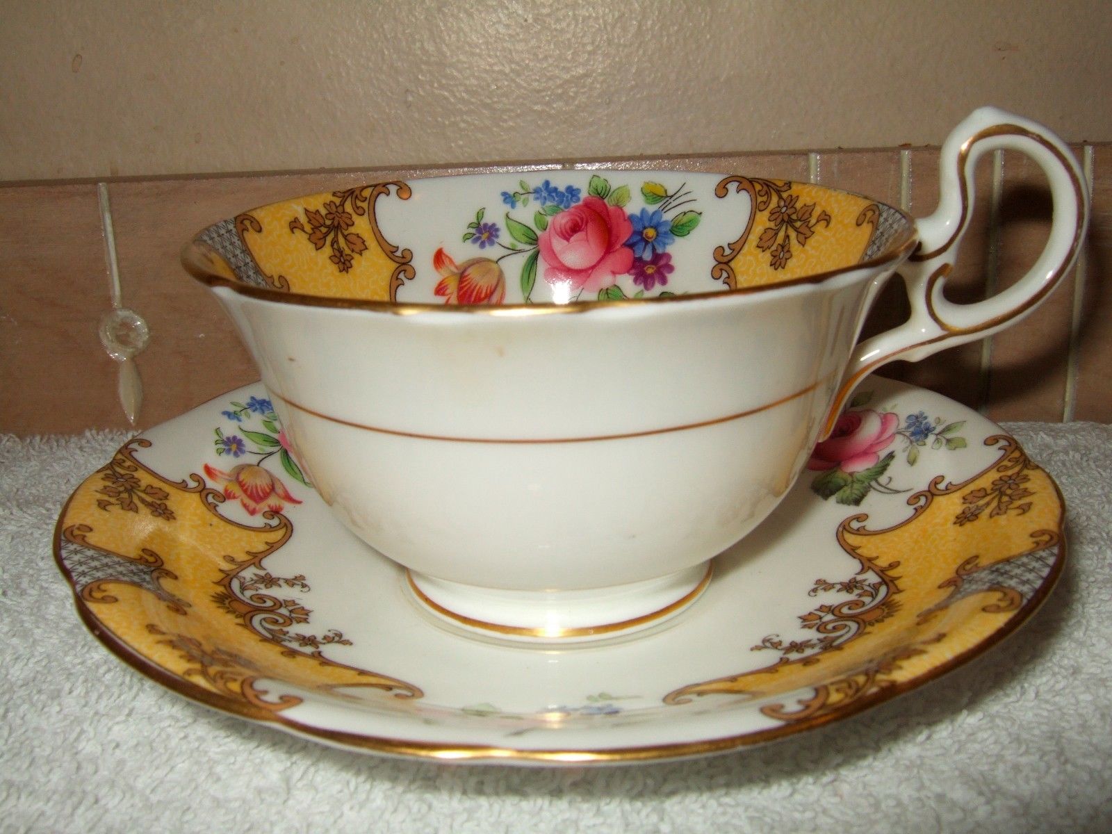 AYNSLEY FLORAL ROSE TEA CUP AND SAUCER SIGNED BY B.A. BAILEY