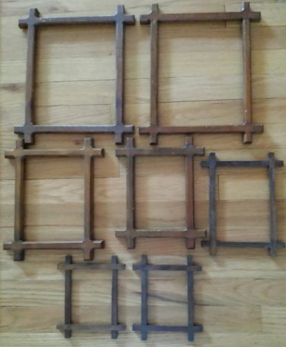Title (ebay affiliate link): 7 VINTAGE ESTATE ADIRONDACK TRAMP ART CRISS CROSS WOOD PICTURE FRAMES LOT