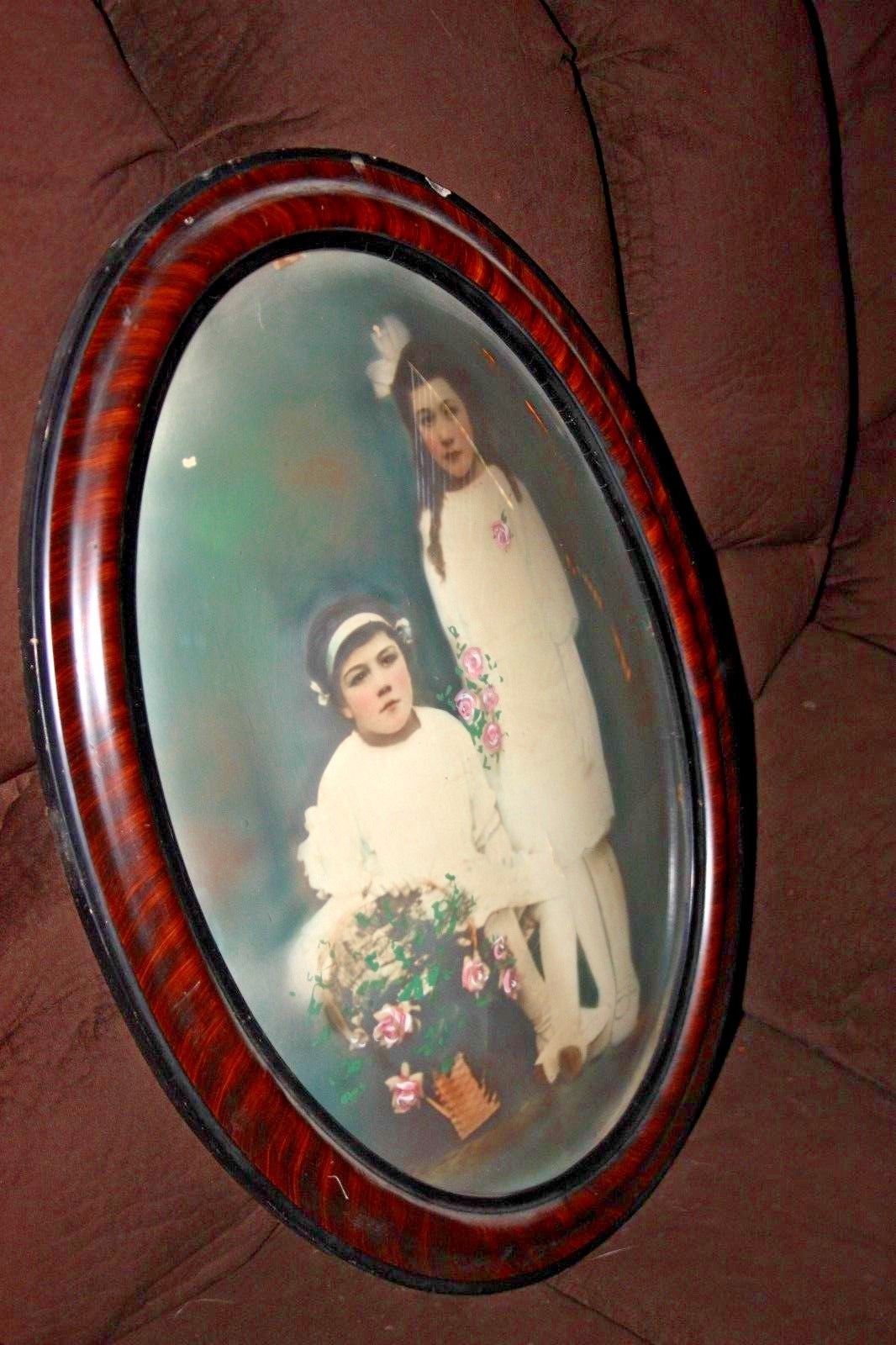 Large Antique Oval Bubble Glass Picture Frame