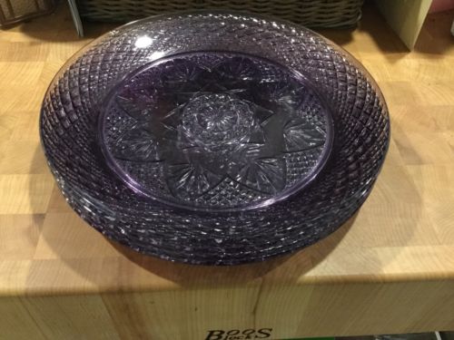 Title (ebay affiliate link): 4 Antique Amethyst/Purple Glass Plates Cris D''Arques Lumiarc Durand Star Pattern