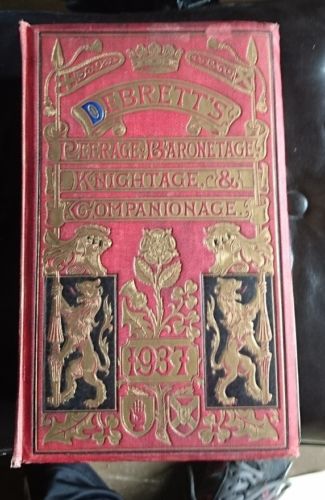 Title (ebay affiliate link): Debretts Peerage, Baronetcy, Knightage & Companionage 1937 Ex Library Deb 1-37