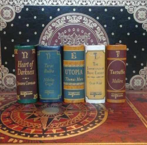 Title (ebay affiliate link): 5 Del Prado Miniature Books Joseph Conrad Oscar Wilde Thomas More Moliere Gogal