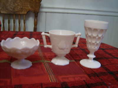 SWEET VINTAGE 3 ""PINK"" MILK GLASS ITEMS NO RESERVE !