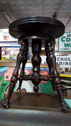Title (ebay affiliate link): ANTIQUE PIANO STOOL GLASS CLAW FOOT VINTAGE ROTATING CAROUSEL ADJUSTABLE RARE
