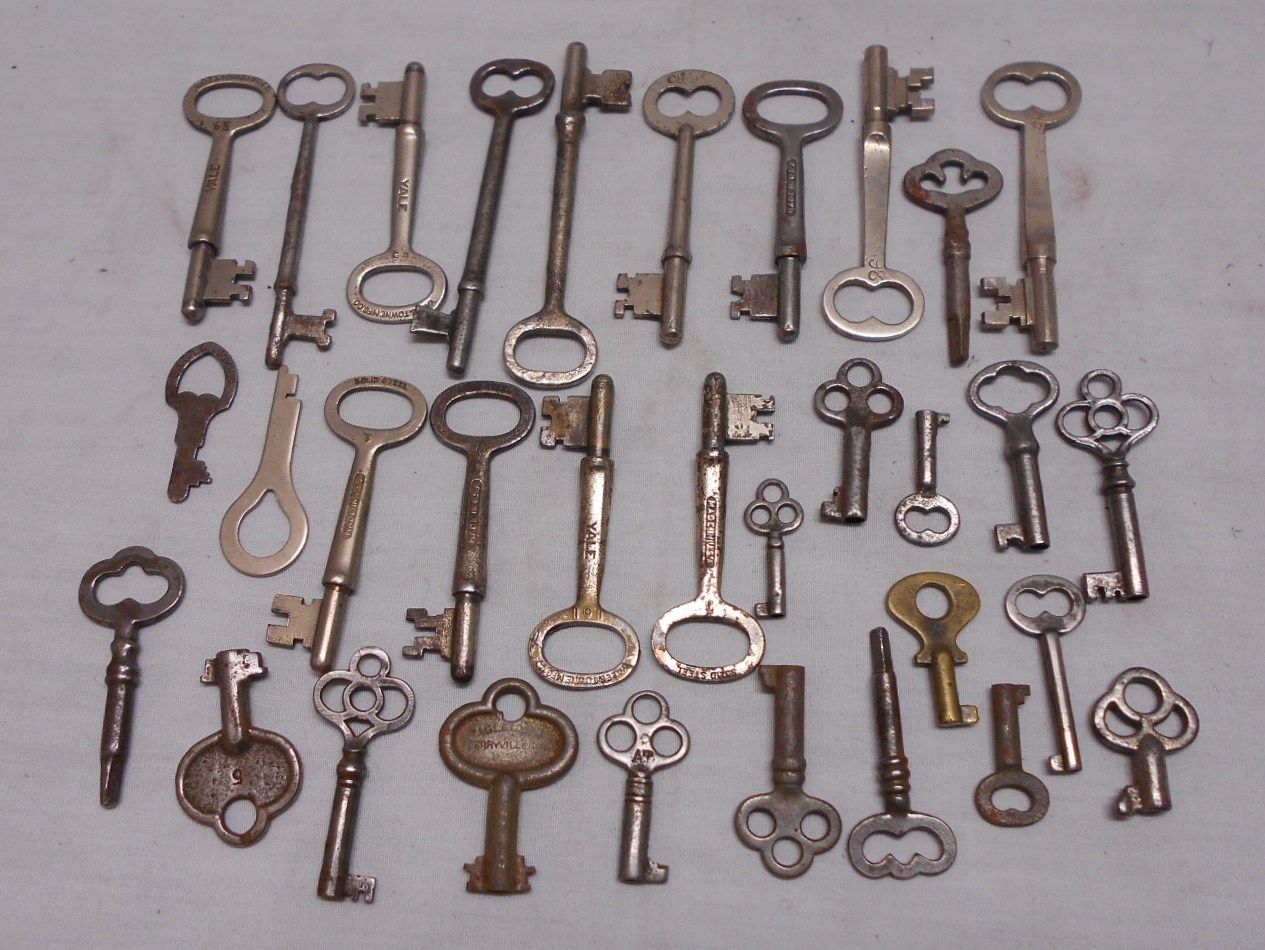 Title (ebay affiliate link): LOT OF 32 ANTIQUE SKELETON, FURNITURE, BARREL, CABINET AND OLD LOCK KEYS