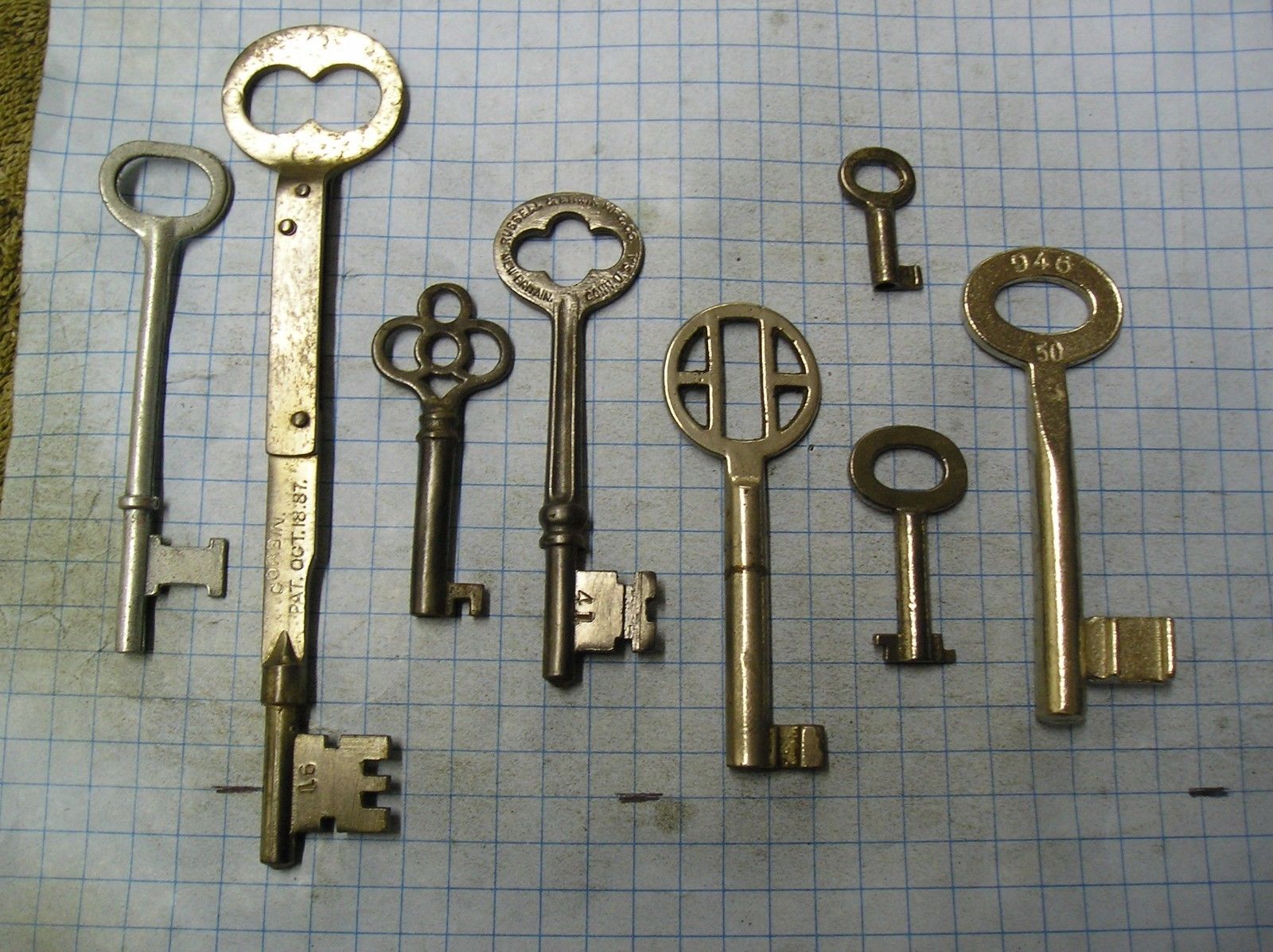 Title (ebay affiliate link): LOT OF 8 ANTIQUE SKELETON, FURNITURE, BARREL, CABINET AND OLD LOCK KEYS