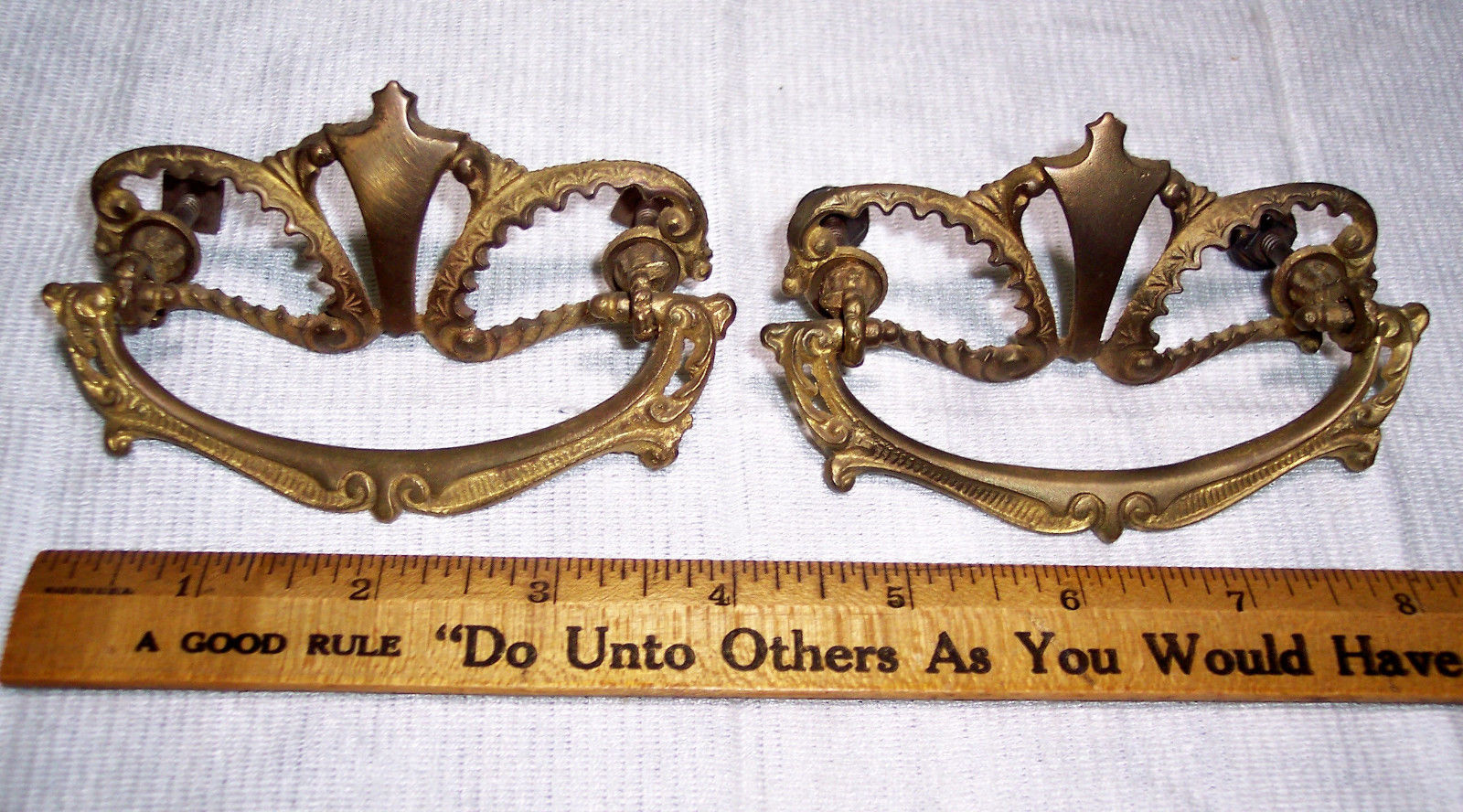 Title (ebay affiliate link): 2 Antique Victorian Fancy Ornate Solid Brass Drawer Handles Furniture Pulls