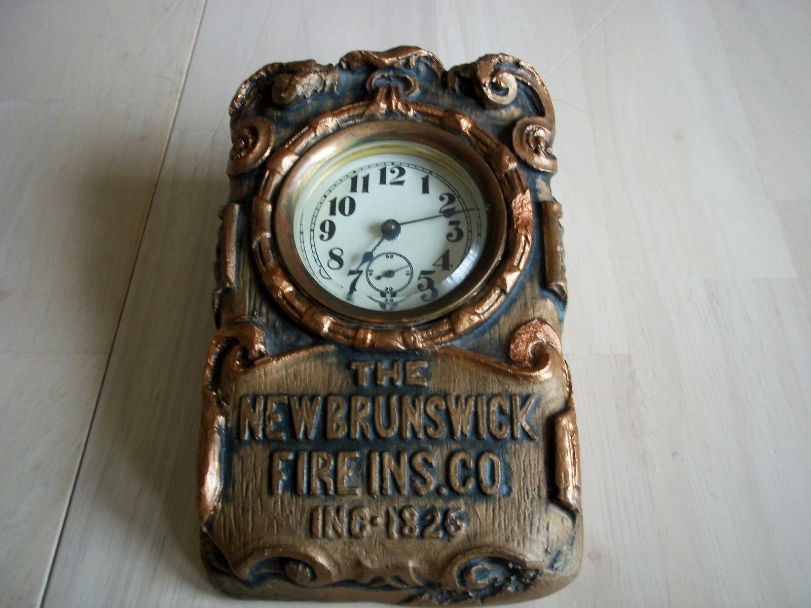Title (ebay affiliate link): Antique Rare Advertising Desk Clock New Brunswick NJ Fire Insurance Co Inc 1826