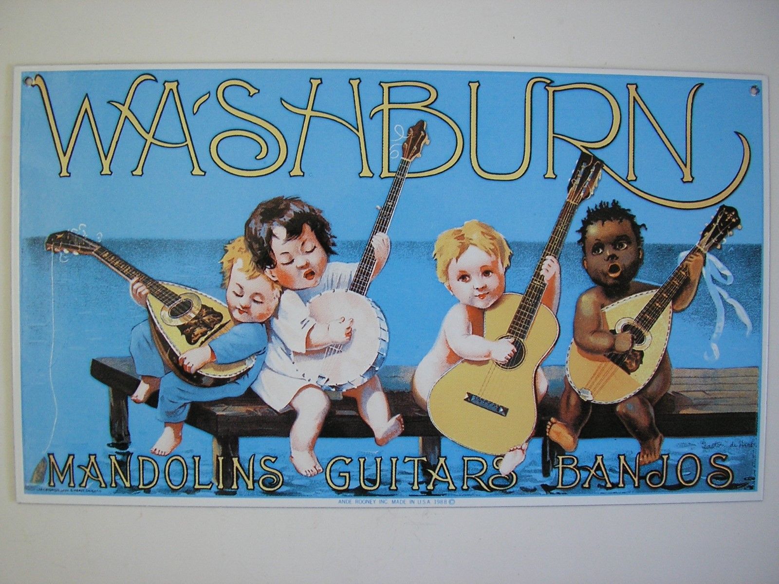 Ande Rooney Porcelain Reproduction Sign Washburn Mandolins Guitars Banjos