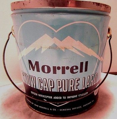Title (ebay affiliate link): Vintage 1940s? Morrell Snow Cap Pure Lard tin pail. This is a lithographed pail