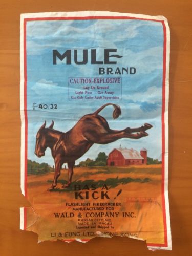 Title (ebay affiliate link): ICC CLASS 4 "MULE" BRAND BRICK FIRECRACKER LABEL -4th OF JULY-7/8" x 40/32