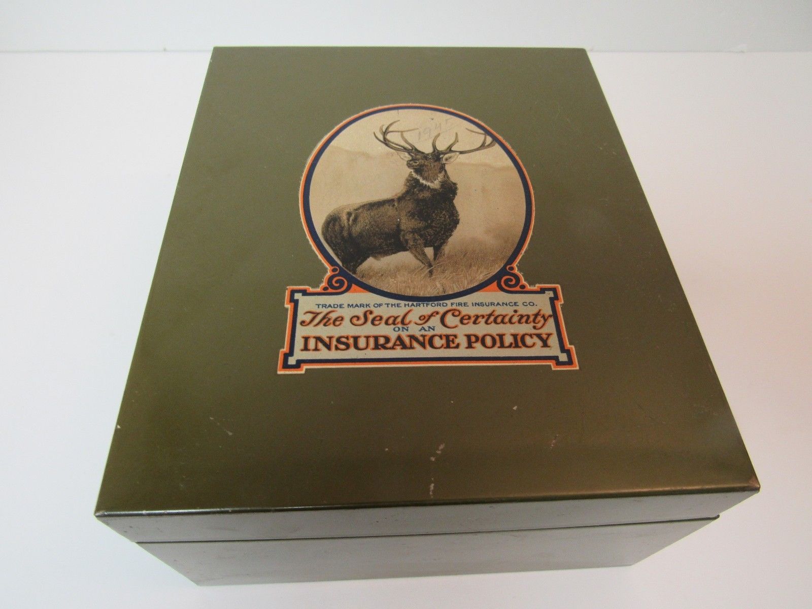 Hartford Insurance Co 1940s Metal Box Vintage with Stag