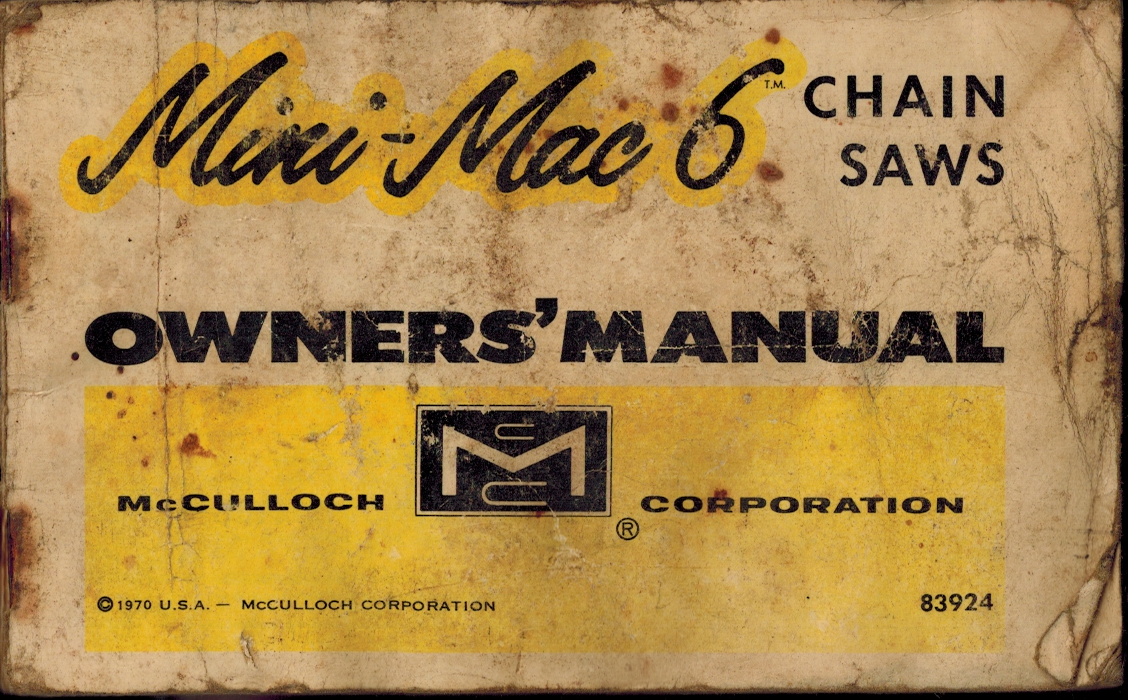 Title (ebay affiliate link): 1970 Mini-Mac 6 Chain Saws Owners'' Manual, McCulloch Corp, Chainsaw Operations