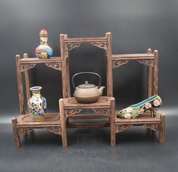 Title (ebay affiliate link): Rare solid hardwood curio shelves Stand Shelf Handmade Carving Deco Art