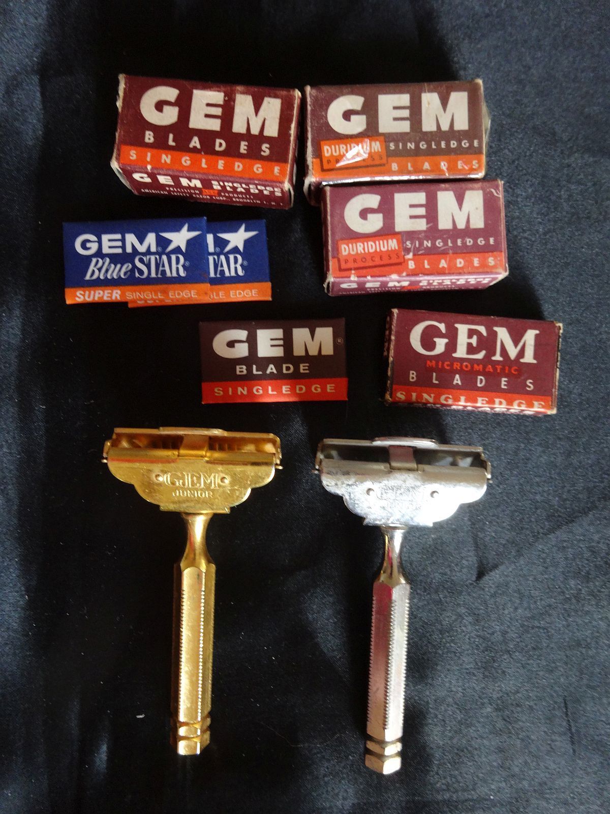 Title (ebay affiliate link): Vintage 1900''s 2 GEM Junior Safety Razors Lot Blades/ Boxes Gold/Silver Shaving
