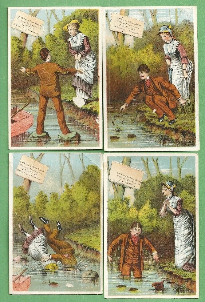 Title (ebay affiliate link): 1890 Trade Cards J. L. NUDD''S LAWRENCE MA Breads Crackers FALLING IN THE POND