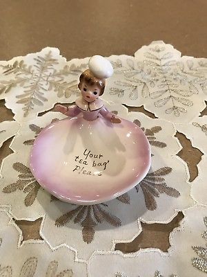 Title (ebay affiliate link): JOSEF ORIGINALS GIRL "Your Tea Bag Please" Tea Holder Japan