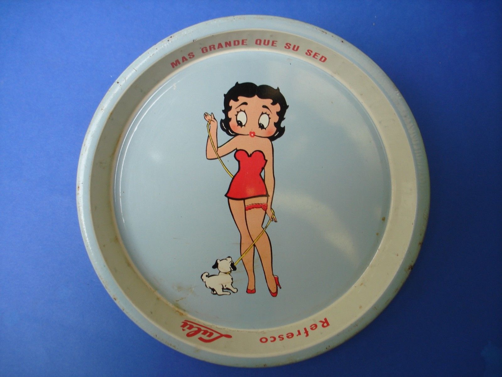 BETTY BOOP DOG WALKER REFRESCO LULU TIN TRAY MEXICO 60s