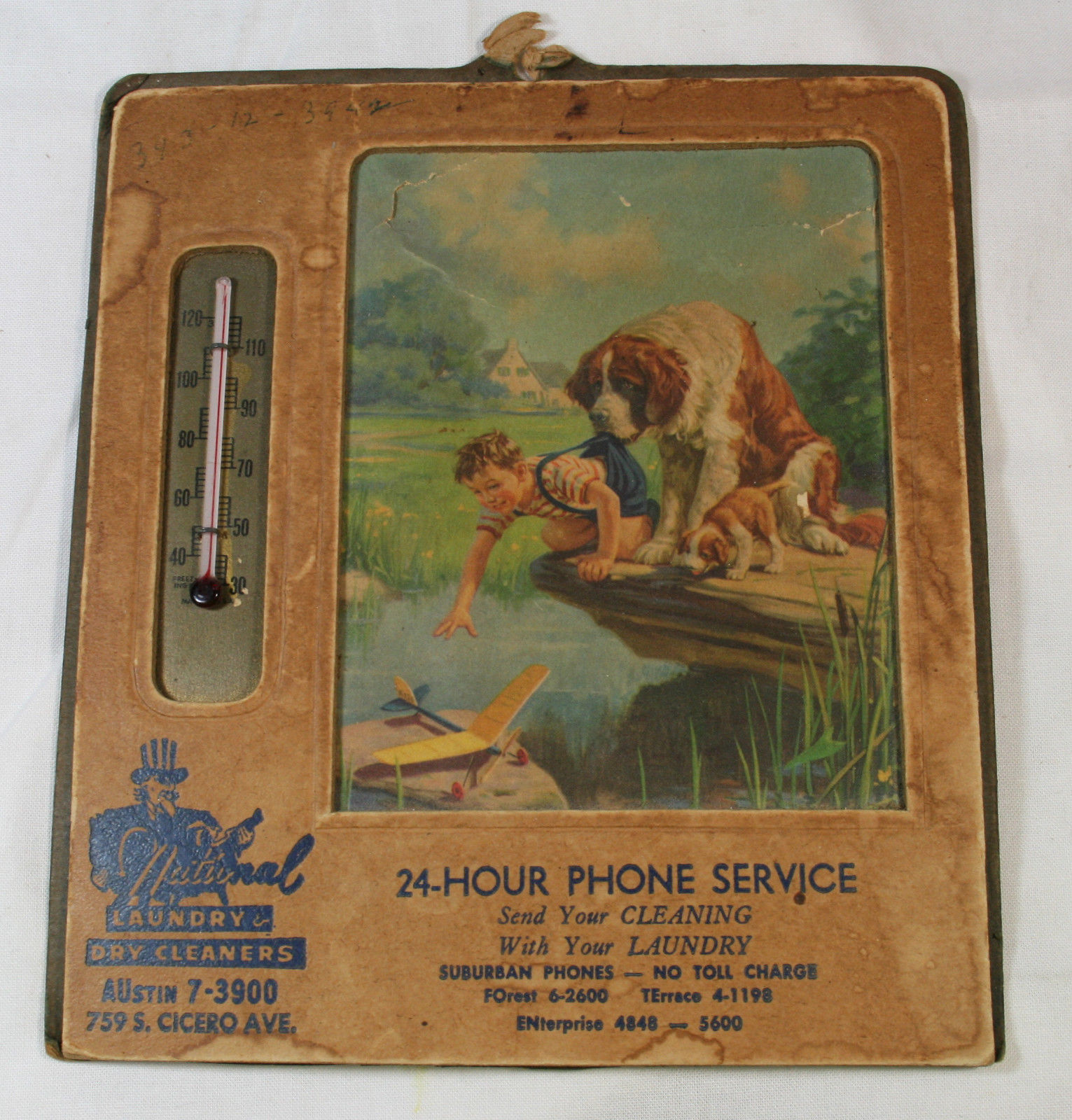 Title (ebay affiliate link): Vintage Advertising Thermometer, Boy & St Bernard Dog, Ntl. Laundry Chicago, IL