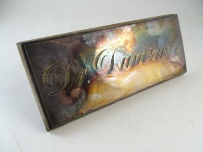 Antique 1840s Racine WI Silver Plated Doctor''s Door Plaque Sign Wood Desk Vtg