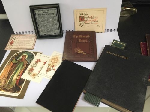 Title (ebay affiliate link): Vintage Leather New Testament Bible & Other Religious Items Interesting Book Inc