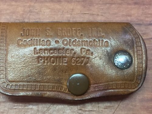 Vintage Original 1950''s Cadillac Oldsmobile Advertising Leather Keychain Fob