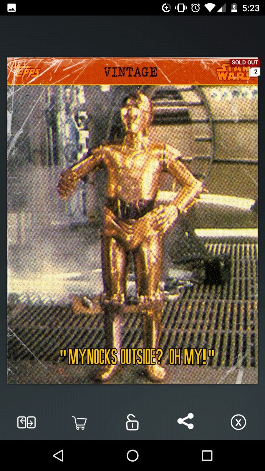 Title (ebay affiliate link): Topps Star Wars Card Trader Mynocks Outside? Vintage C-3PO (Digital Card)